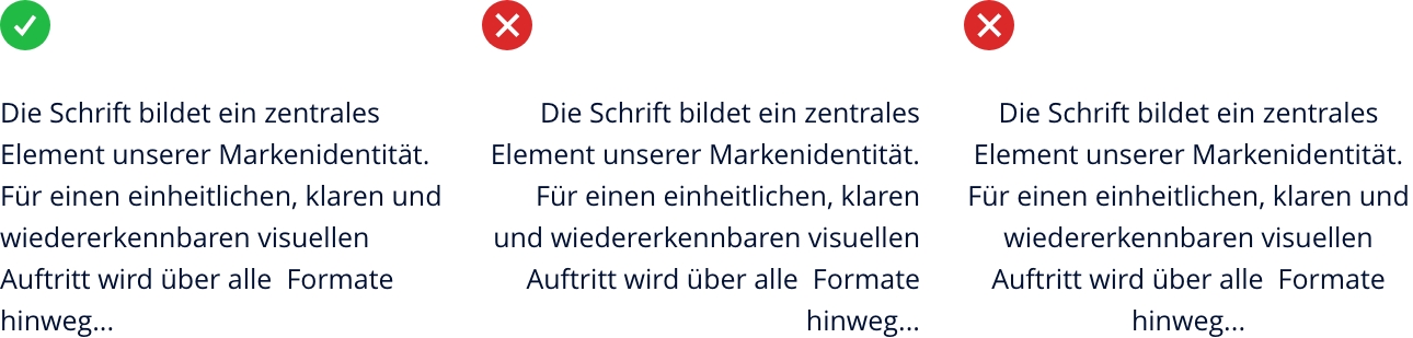 Texte sollten möglichst linksbündig ausgerichtet sein.