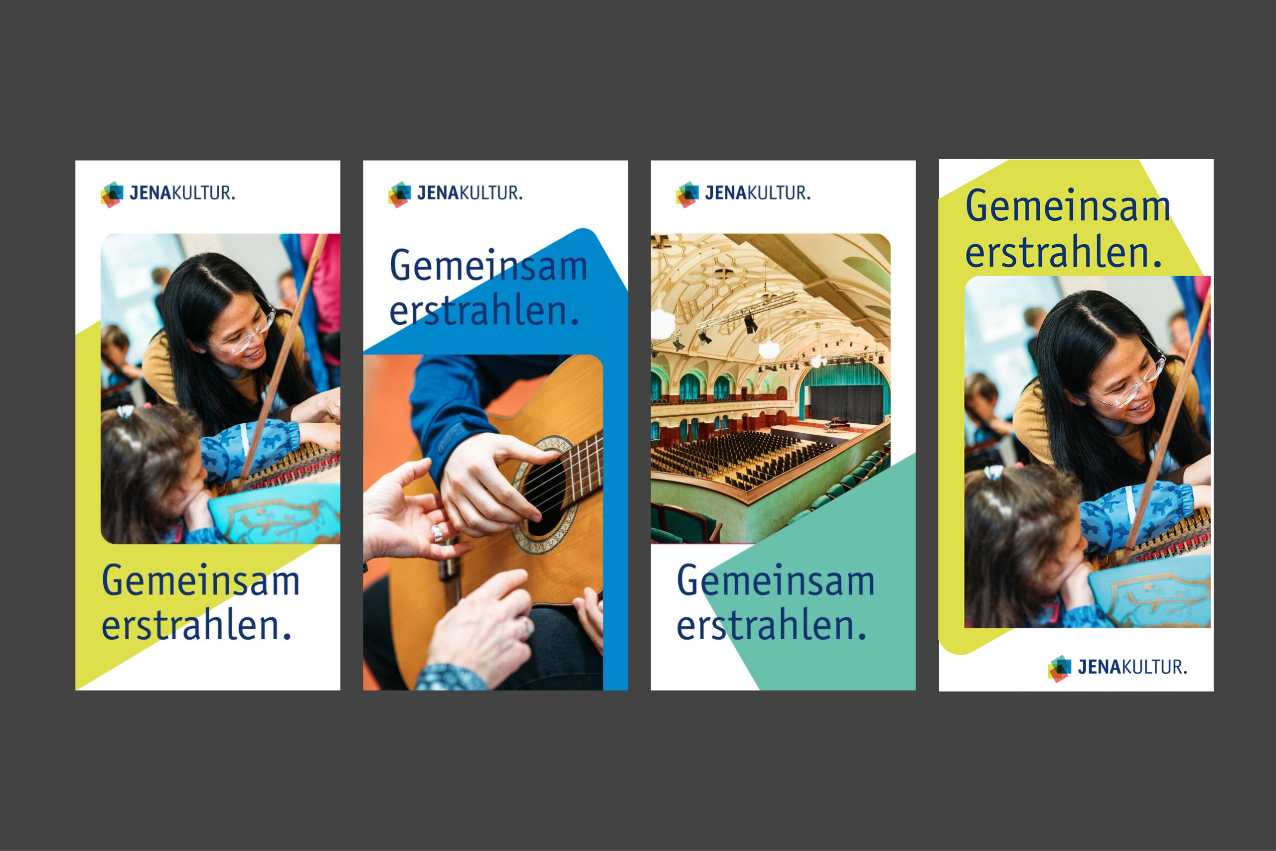 Die Unternehmensmarke JenaKultur bildet ein wichtiges Zentrum des visuellen Markenauftritts, transportiert die Werte des Eigenbetriebs JenaKultur nach außen und schafft Wiedererkennbarkeit.